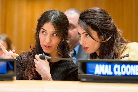 Billedtekst: Amal Clooney th. sammen med yazidikvinden Nadia Murad tv.