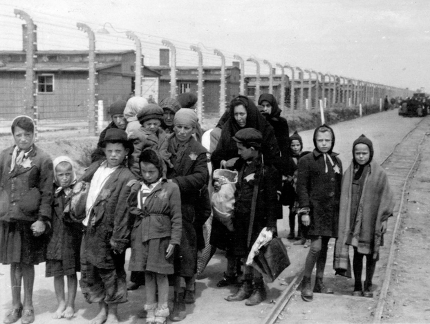 Mødre og børn på vej direkte i gaskamrene ved deres ankomst sammen med andre ungarske jøder 27. maj 1944. (yasvadem.com)