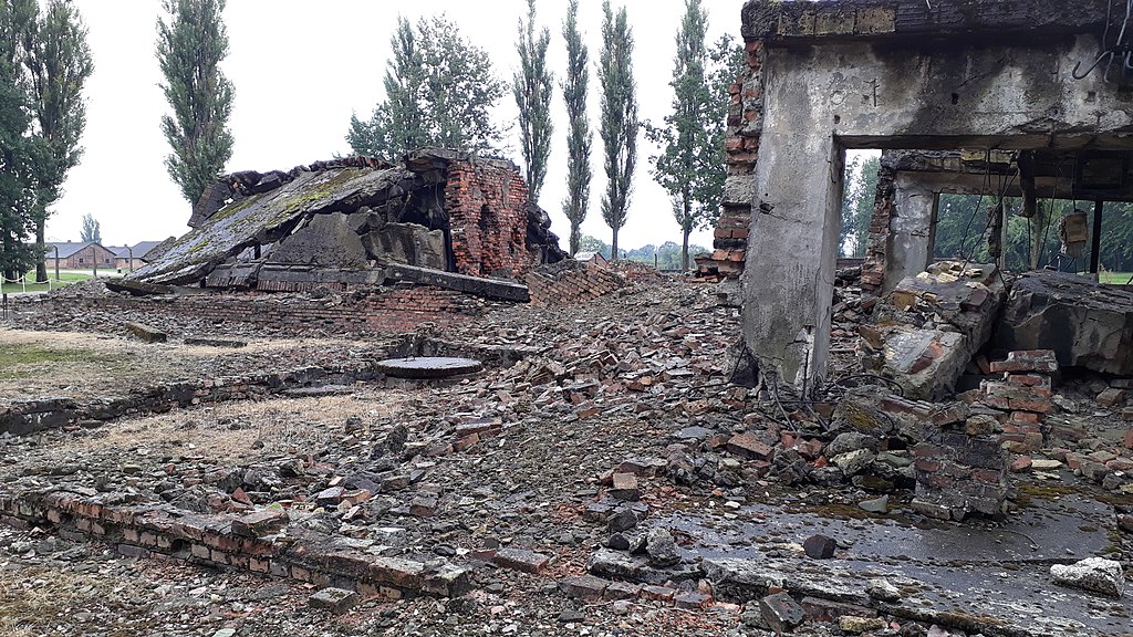 Foto af ruinerne af krematorium II i Birkenau fra 2018. Foto: Stefan97.