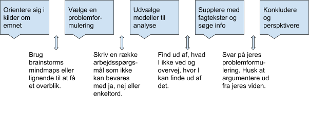 Der er ikke én fast måde at angribe et problemorienteret projektarbejde på, men her er et forslag til en arbejdsgang: